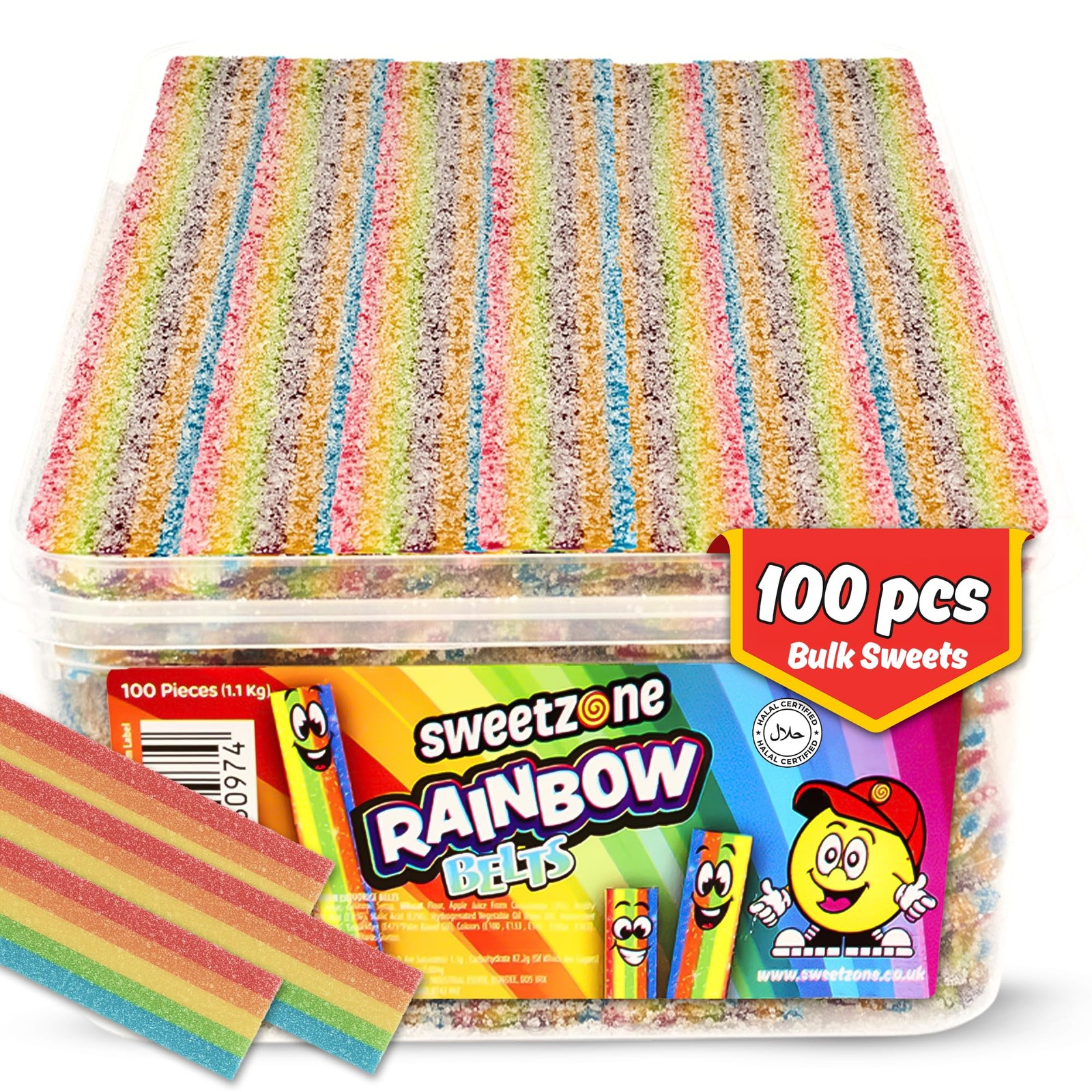 Sweetzone Rainbow Belts Sour Sweets Tub, Fizzy Halal Sweets Candy in Bulk, 1....