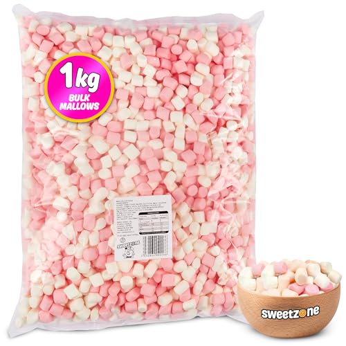 Sweetzone Mini Mallows Pink and White Halal Mini Marshmallows, Sweets Bulk, Retro, Candy for Sweet Bags Marshmallows for Hot Chocolate, 1kg Bulk Sweets Bag