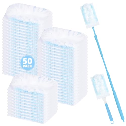 Nicemiya 52-Pack Duster Refills Compatible with Flash & Swiffer Dusters, Flash Dust Magnet Refills-Effectively Removes Dust, Dirt and Pet Hair for Home & Office Cleaning (50 Refills + 2 Handles, Blue)