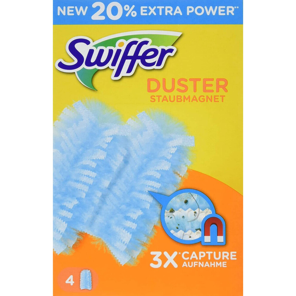 Swiffer Duster Starter Kit (1 handle and 4 refills), captures and locks in 3x more dust and hair compared to a traditional duster