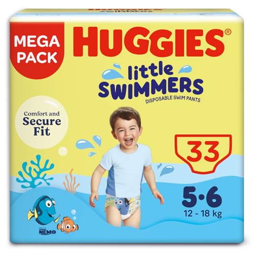 Huggies Little Swimmers, Swim Nappies, Size 5-6 - 33 Pants - Maximum Protection Swimming Nappies with Leak Guards - All-Round Stretchy Waistband