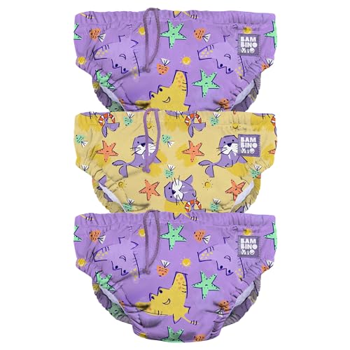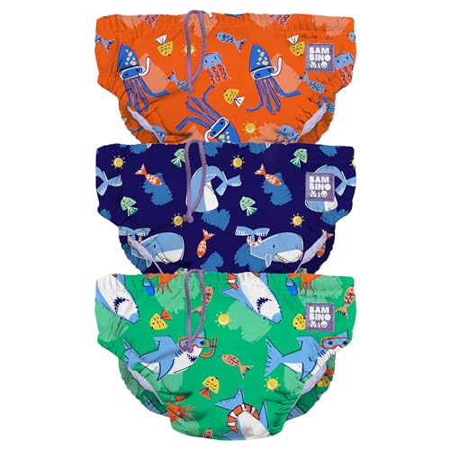 Bambino Mio Swim Nappy Pants, (2-3 Years) Reusable Unisex Pull-up Swim Nappies 3-Pack, Washable (Sealife Friends)