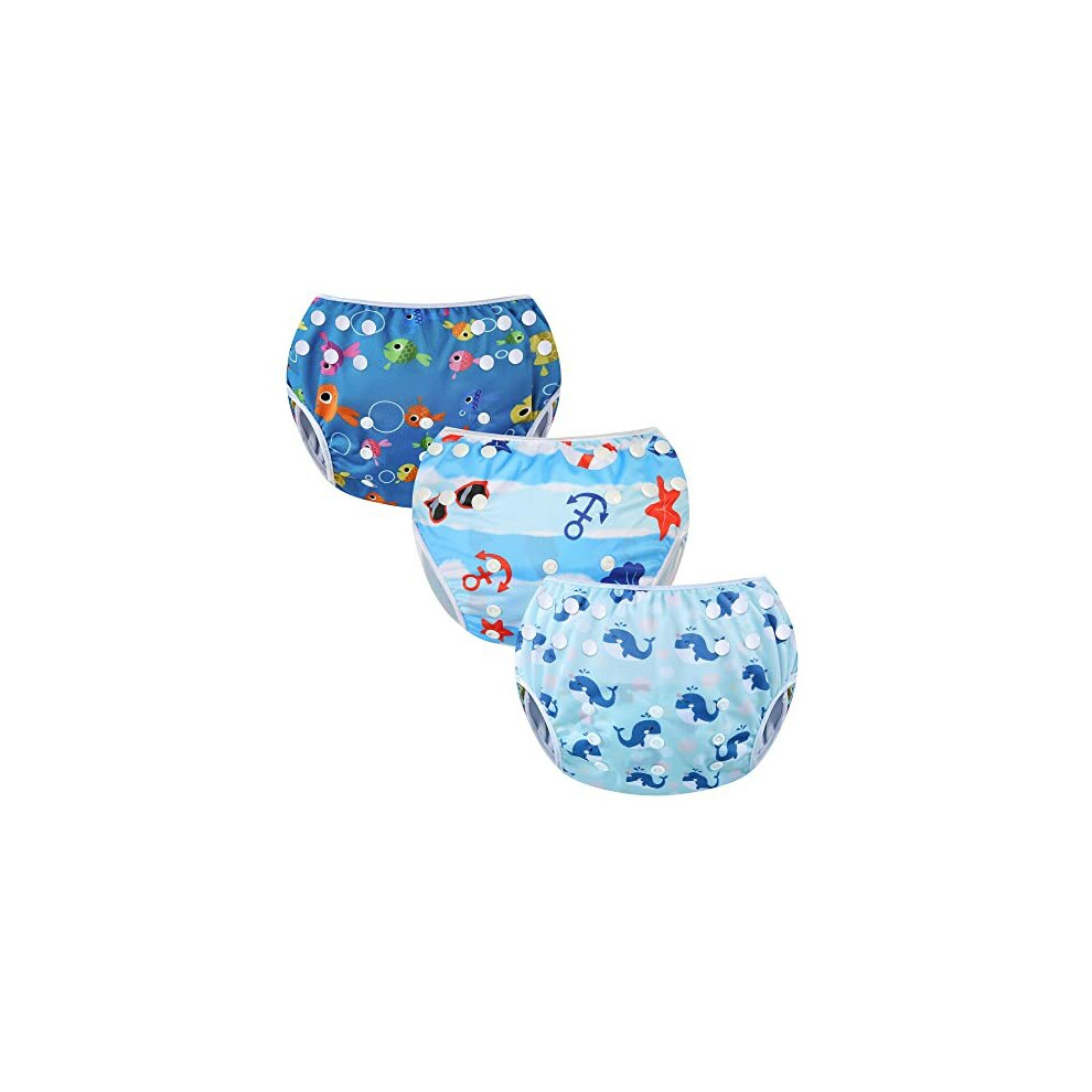Swimming Nappy Reusable Swim Baby Nappies Adjustable Size Washable Pack of 3 Nappies for Swimming Lessons 0-3 Years(Fish+Beach+Whale)