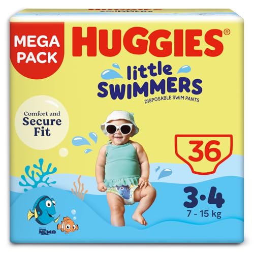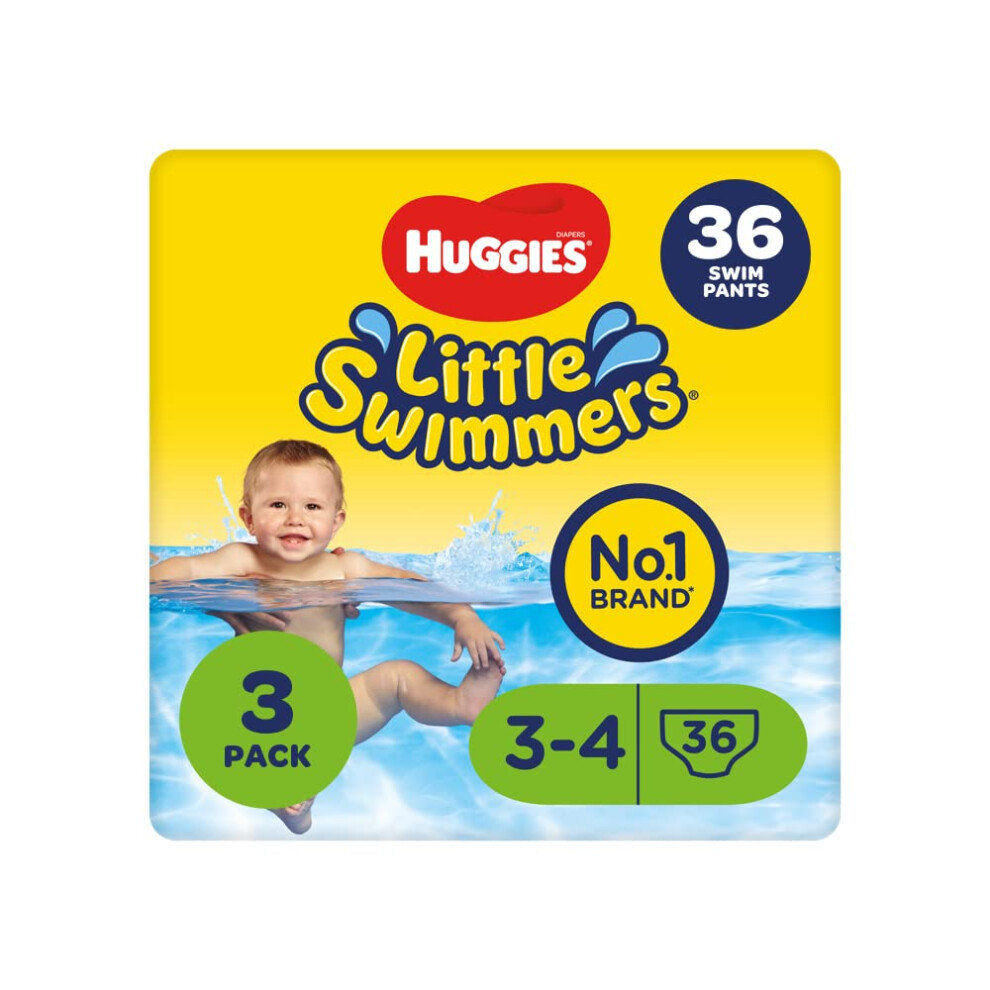 Huggies Little Swimmers, Swim Nappies - Size 3-4, 36 Baby Swim Pants - Leak Guards and Stretchy Waistband Protect Without Swelling - Tear Sides for Easy Removal