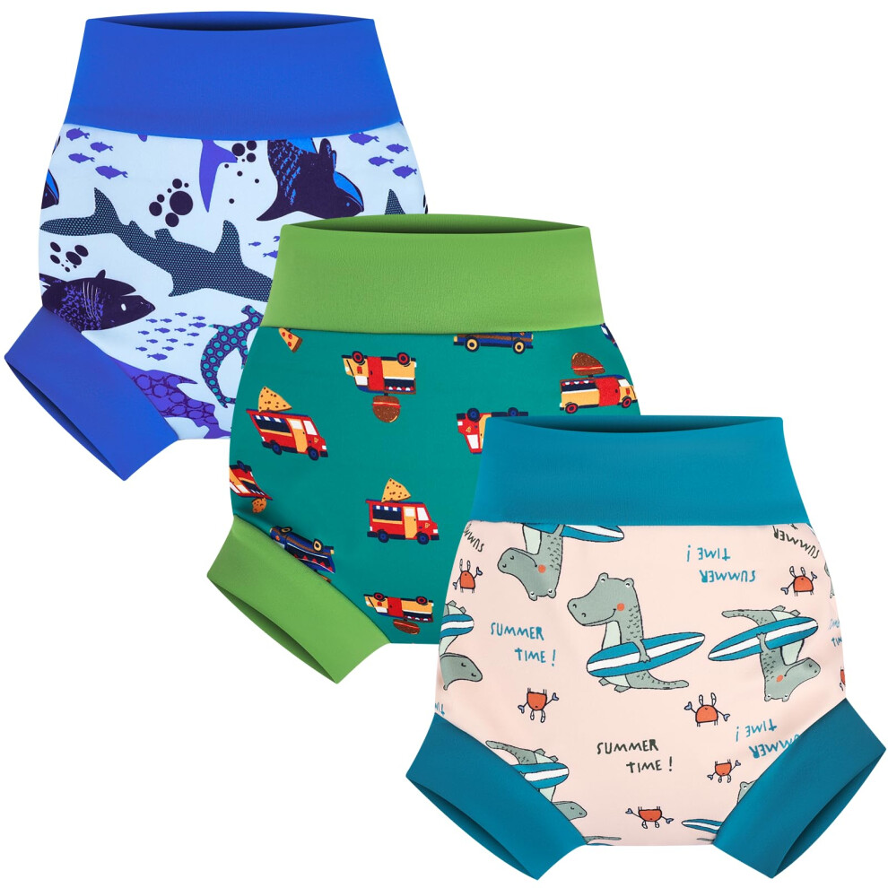 Bambino Mio Swim Nappy Pants, (1-2 Years) Reusable Unisex Pull-up Swim Nappies 3-Pack, Washable (Beach Buddies)