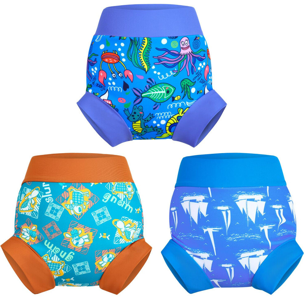 MOEMOE BABY Swim Nappy Reusable Swim Nappies for Toddler,Washable Swimming Nappies for Boys and Girls,3 Packs,Sailboat+Dog+Whale,4 Years