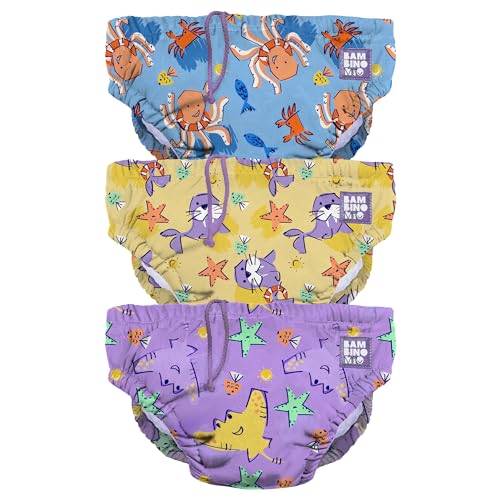 Bambino Mio Swim Nappy Pants, (1-2 Years) Reusable Unisex Pull-up Swim Nappies 3-Pack, Washable (Sealife Friends)