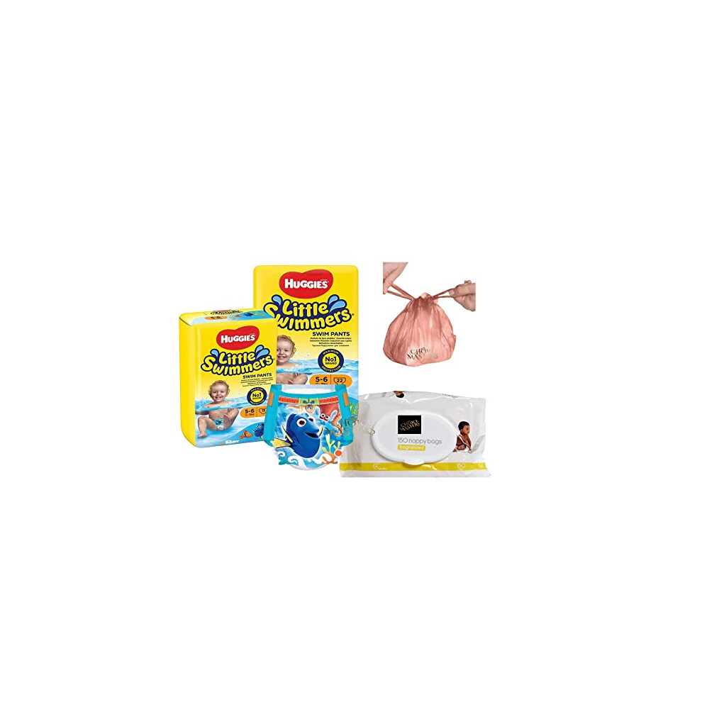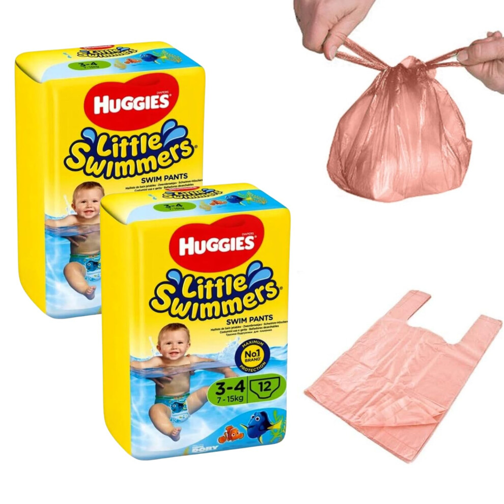 Swim Nappies - Disposable Huggy Nappies for Babies with 200 Tilz Nappy Bags Little Swimmers Size 2-3 (7-15kg) - 24 Waterproof Nappies for Swimming -