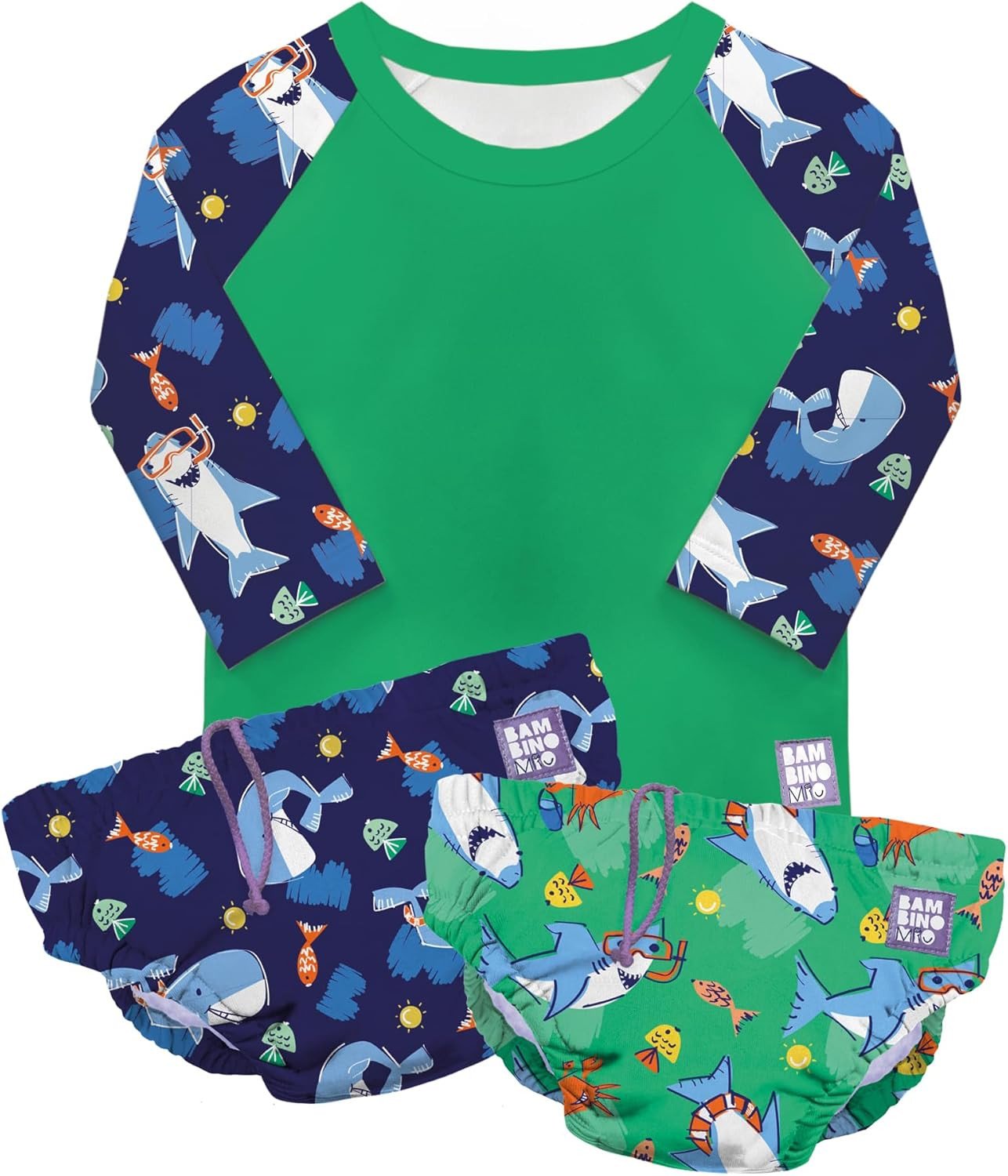 Bambino Mio, Revolutionary Reusable Swim Set - 2 Swim Nappies and Rash Top, Baby and Toddler, Sun Protection UPF40+