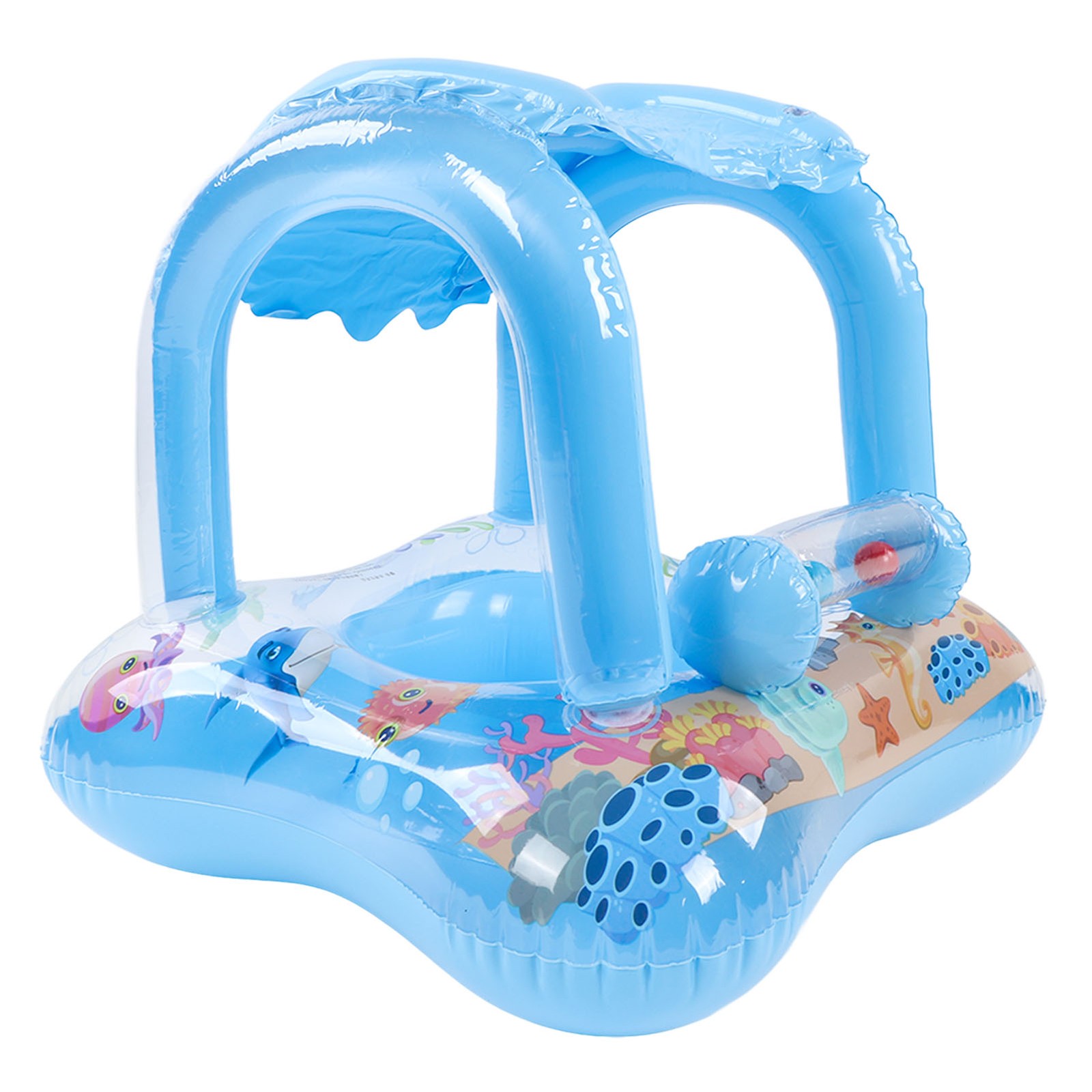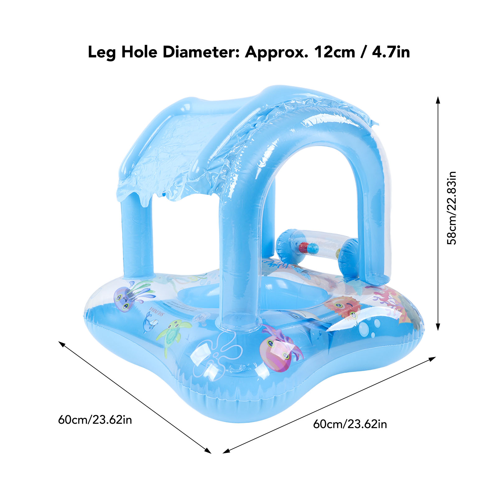 ԾBlue Baby Pool Float Sunshade Swim Ring Infants Boat Inflatable Toy Wi