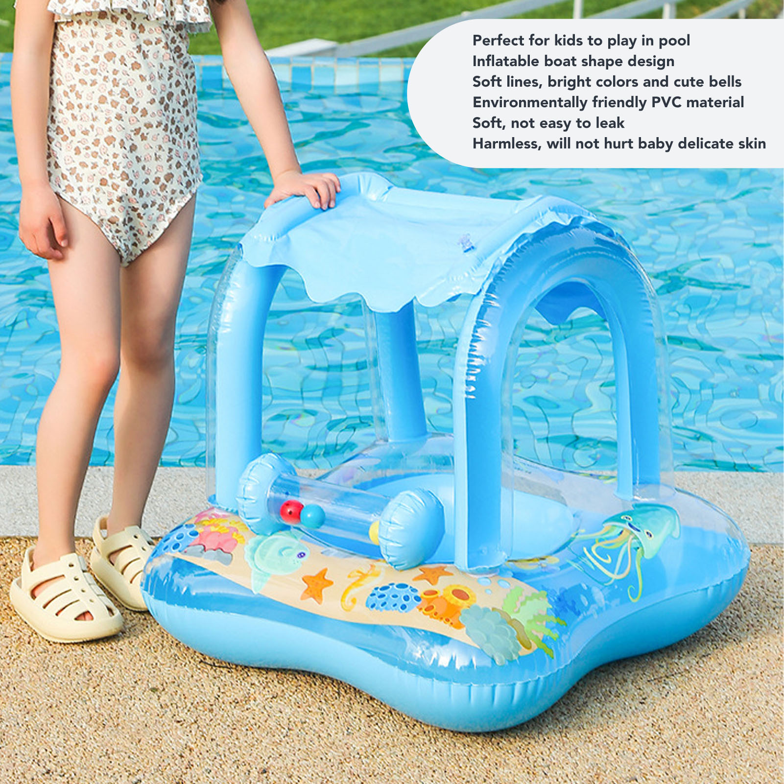 Baby Pool Float Sunshade Swim Ring Infants Boat Inflatable Toy With Awning