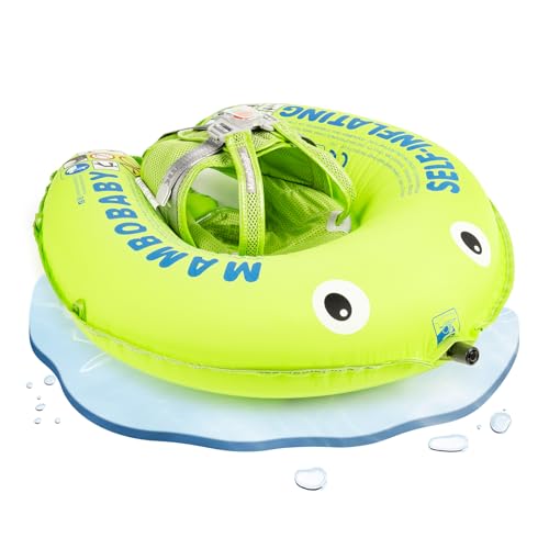 HECCEI Baby Swimming Float for 3-24 Months, Mambobaby Self-Inflating Toddler Pool Float with Carry Bag, Anti-Flip Design Baby Swim Ring for Infants and Toddlers