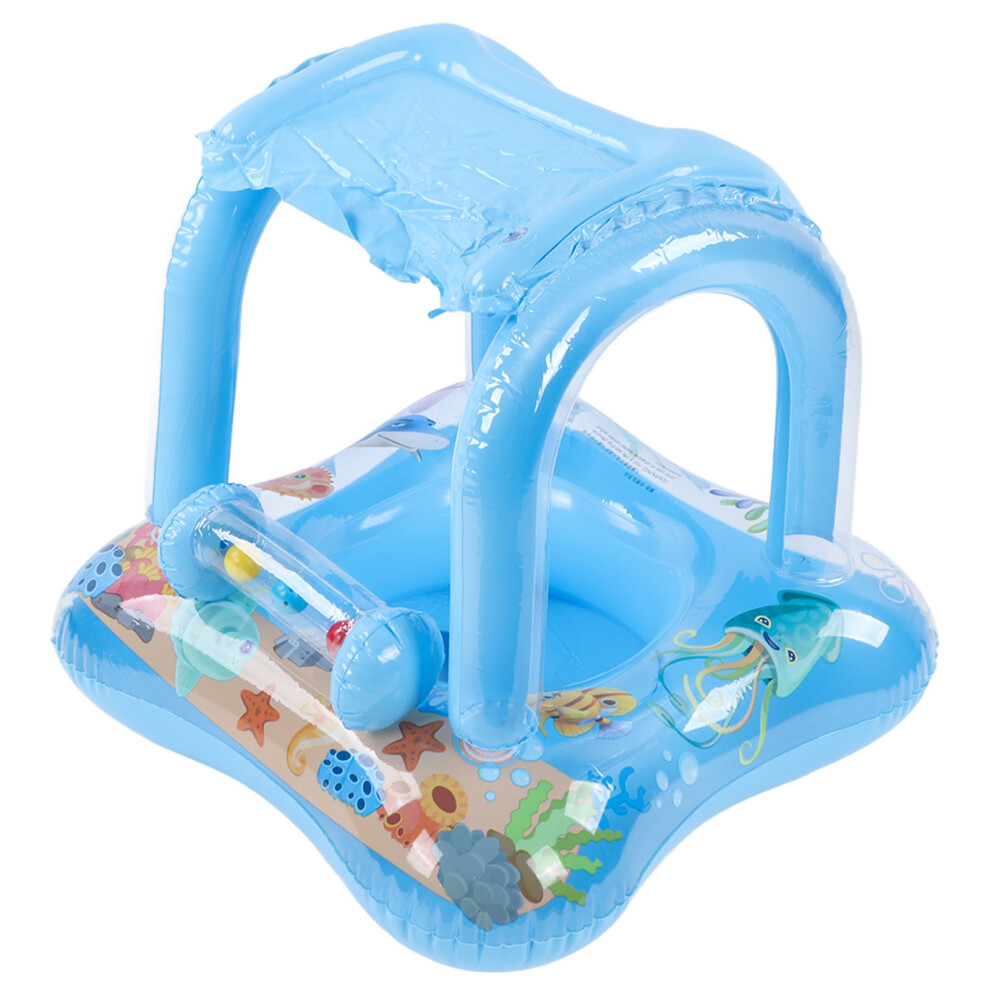 Baby Pool Float Sunshade Swim Ring for Infants, Blue, PVC, Handle & Bell