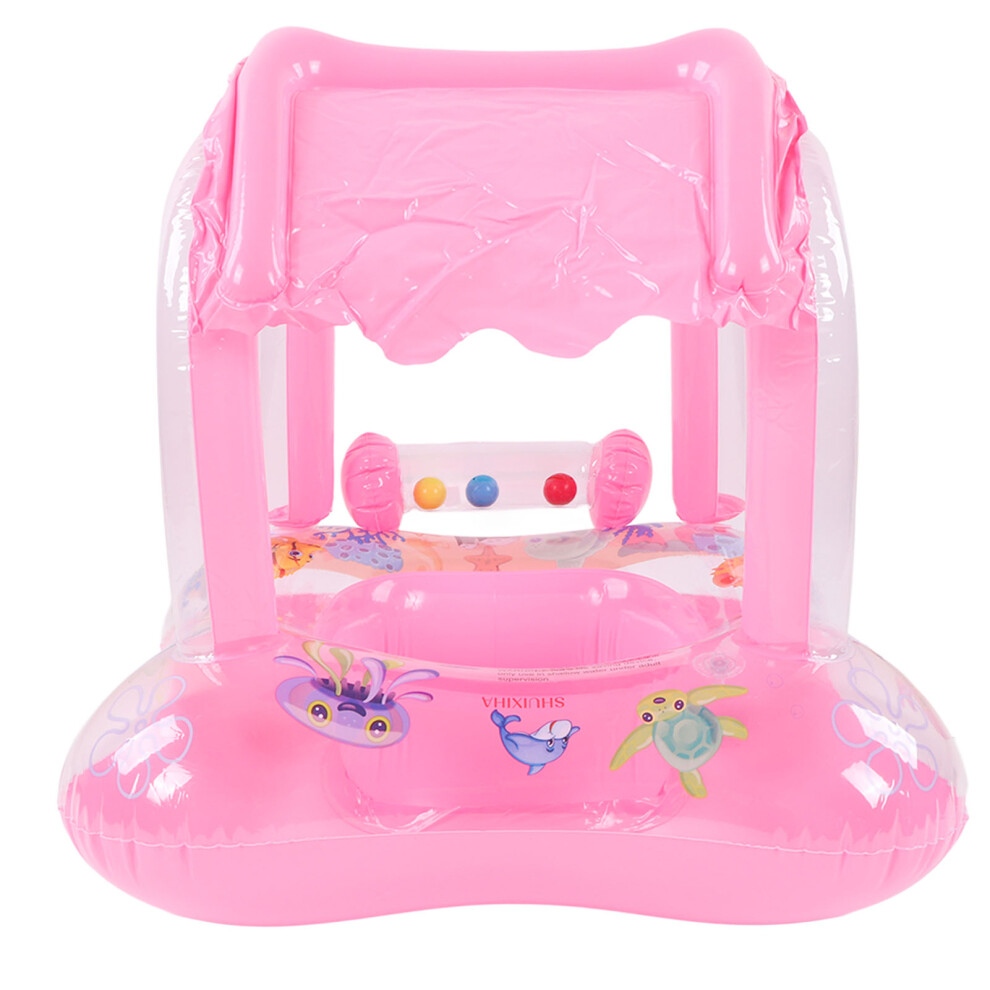 Baby Pool Float Sunshade Swim Ring Infants Seat Boat Inflatable Toy with Awning Handle Small Bell Pink