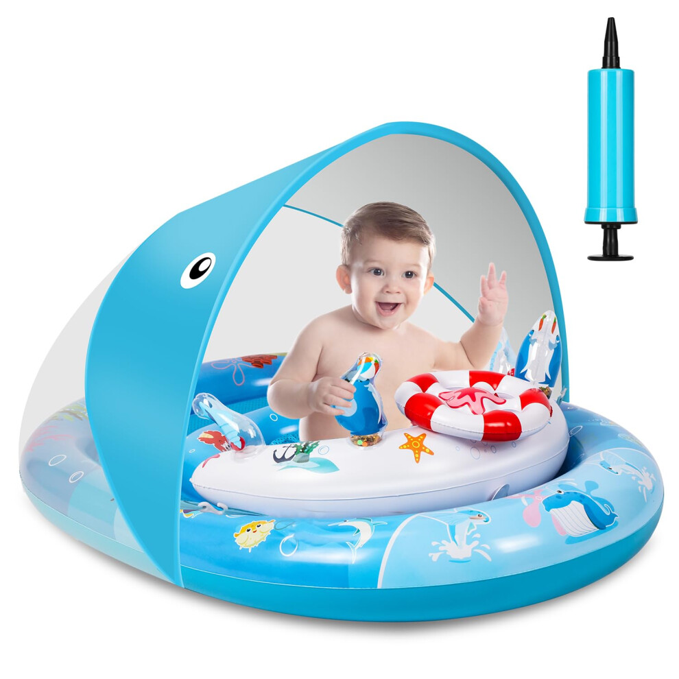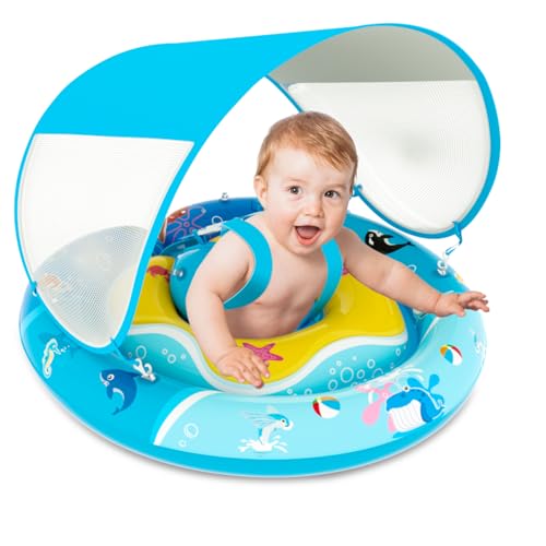 ACELIFE Baby Swimming Float with Canopy UPF 50+, Inflatable Baby Swim Ring with Adjustable Safety Seat, Baby Pool Float for Infants Kids Toddler 3 to 36 Months, Baby Birthday Gift