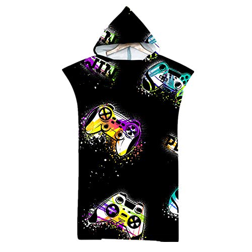 Adults Hooded Towel Poncho,Changing Robe Towel,Men Women Teen Boy Girls Hooded Design Beach Towel Poncho,Holidays,Swimming,Surfing,Bathing,Travel Towel Microfibre Swim Towels (Game black)