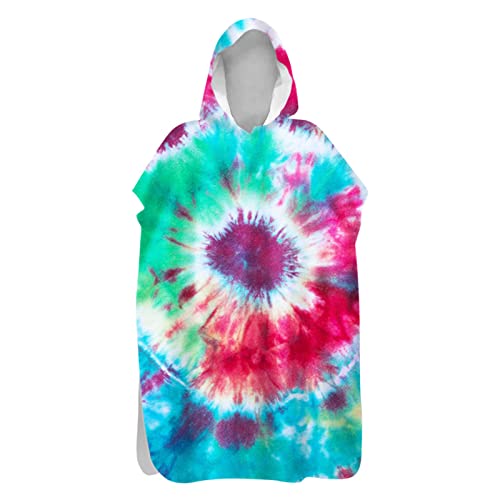 Chickwin Changing Robe Towel Poncho for Adult Kid, Tie Dye Printed Quick Dry Poncho with Hood Swim Beach Towel Microfibre Beach Surfing Swimming Robe (Green Pink Tie Dye,75x145cm)