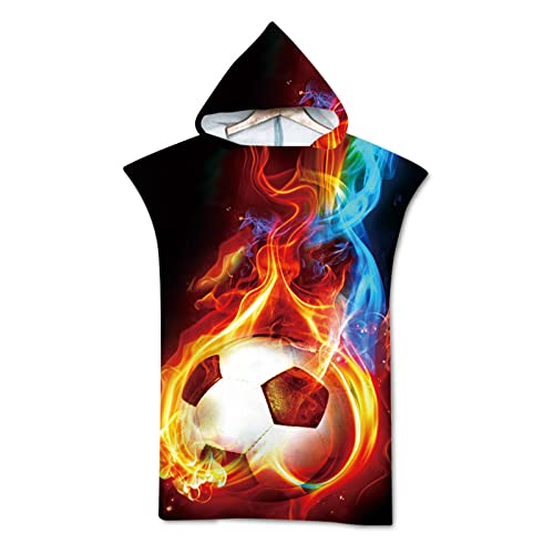 Highdi Swim Beach Poncho Towel Adults, Water Flame Ball Pattern Hooded Towel Beach Changing Robe/Towel Changing Robe Surf/Microfibre Water Absorbent Swimming Towel, fit Men Women (Football 1)