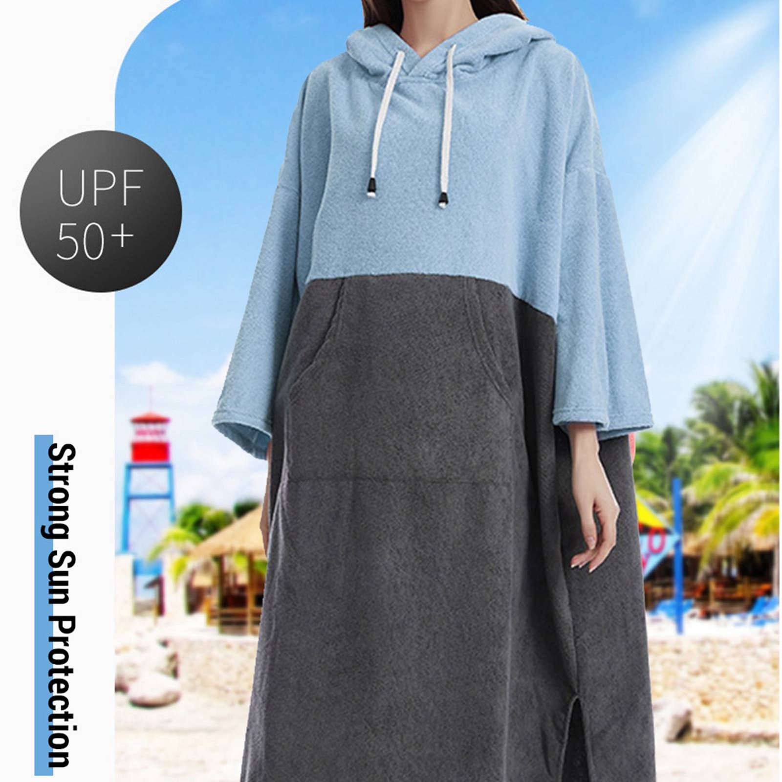 Outdoor Swim Changing Robe Quick Dry Cape Hooded Beach Ponytail Water Blue