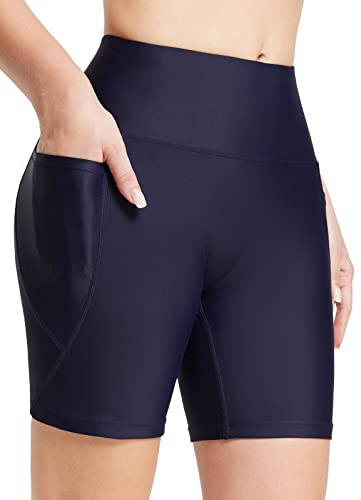 baleaf Swim Shorts Women High Waisted 6'' Swimsuit Shorts with Pockets Tummy Control Swimwear Liner UPF 50+ Navy M