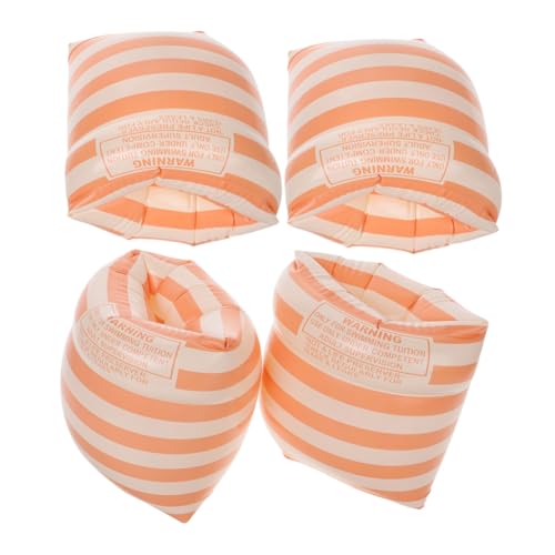 INOOMP 2 Pairs Inflatable PVC Arm Floaties for Adults, Double-Chamber Swimming Armbands Stripe Texture, Orange Water Floaties for Swimming Training and Pool Fun