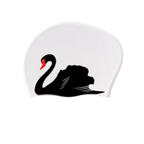 Women SwimminSg Cap Long Hair Ear Protection Waterproof Swimming Hat Elastic Silicone Swan Print Pool Accessories Swimming Cap(For long hair A)