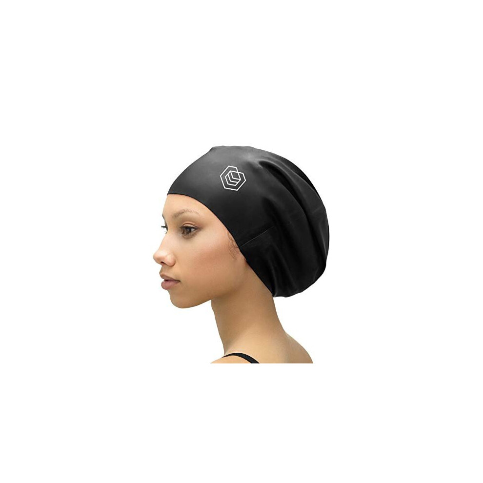 â Large Swimming Cap for Long Hair - Designed for Long Hair, Dreadlocks, Weaves, Hair Extensions, Braids, Curls & Afros - Women & Men - Silicone (XL