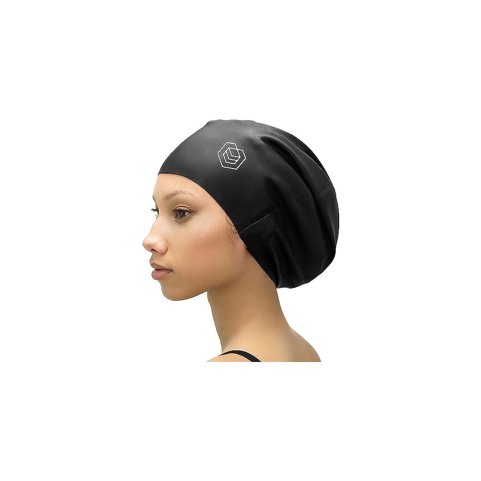 SOUL CAP – Large Swimming Cap for Long Hair - Designed for Long Hair, Dreadlocks, Weaves, Hair Extensions, Braids, Curls & Afros - Women & Men - Silicone (Black, Large)