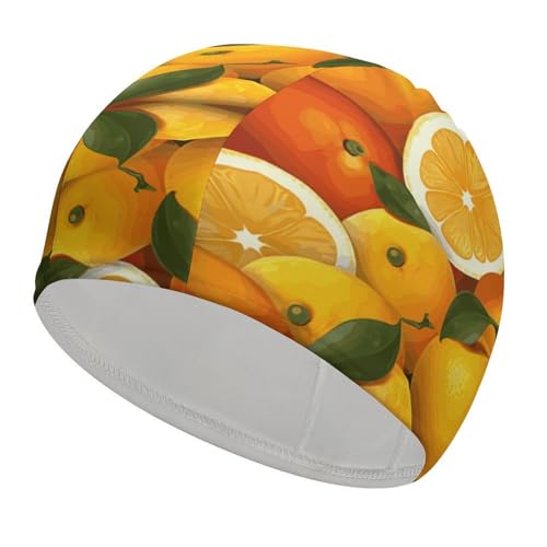 Orange Pumpkin Pattern Swim Cap for Women Men Waterproof Bathing Caps Keep Hair Dry Elasticity Adult Swimming Caps Comfortable Long Hair Swim Hat Non-Slip Fabric Swimming Cap