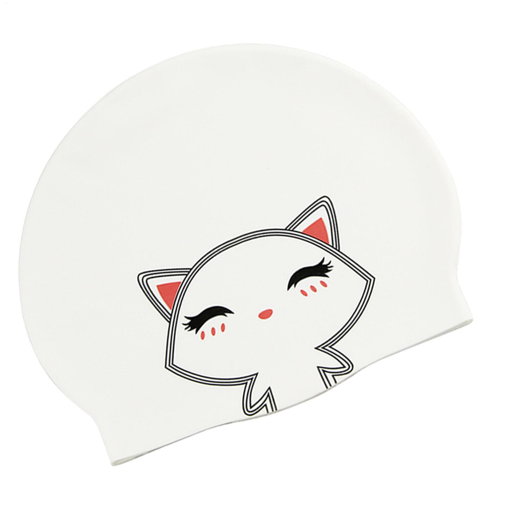 Swimming Caps for Long Hair Silicone Waterproof Hat Flexible Non-Slip Design for Women Men Adults White Cat