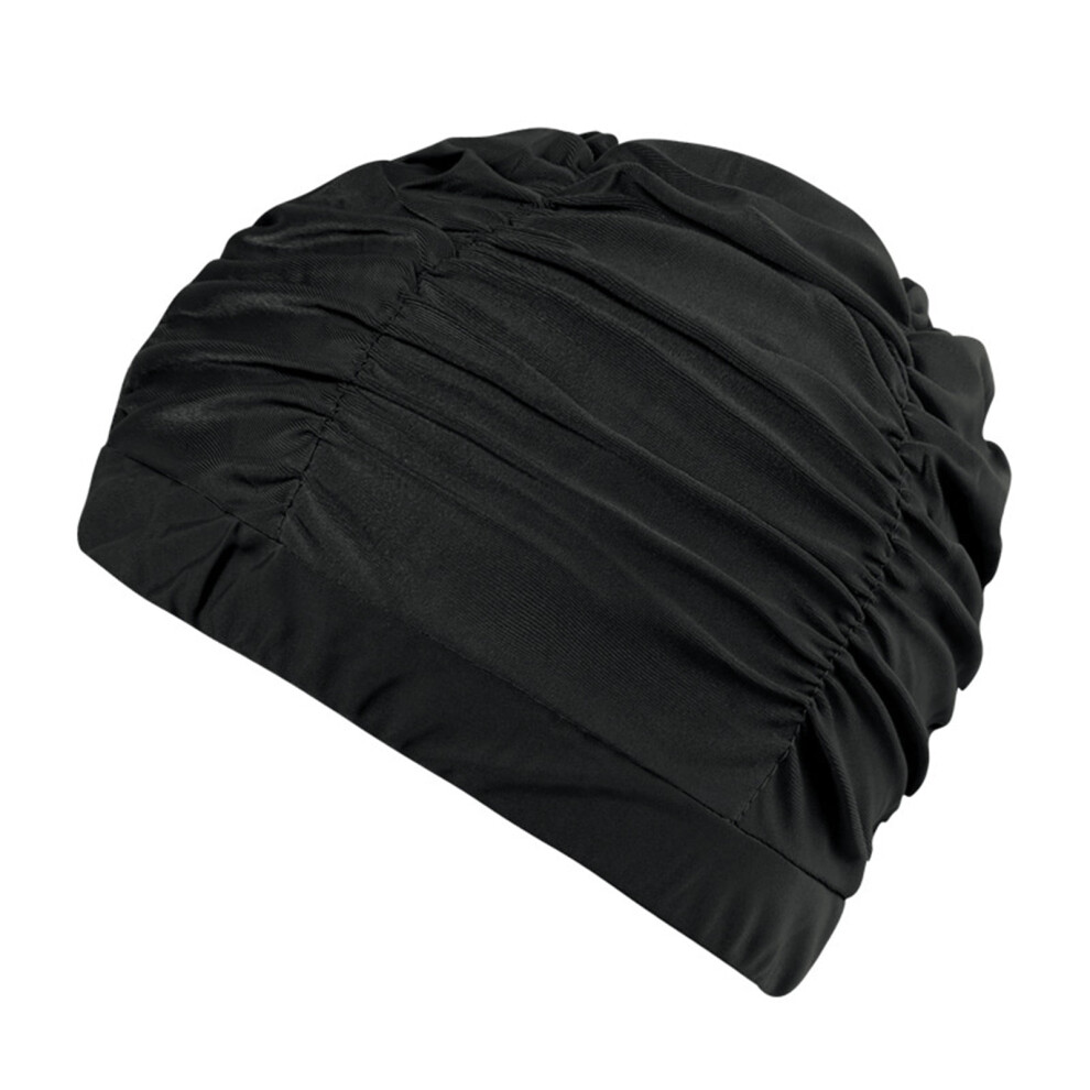 Swim For Women Pleated Bathing Caps Swimming Hats For Long Hair (Black) Water Sports Supplies (Black)