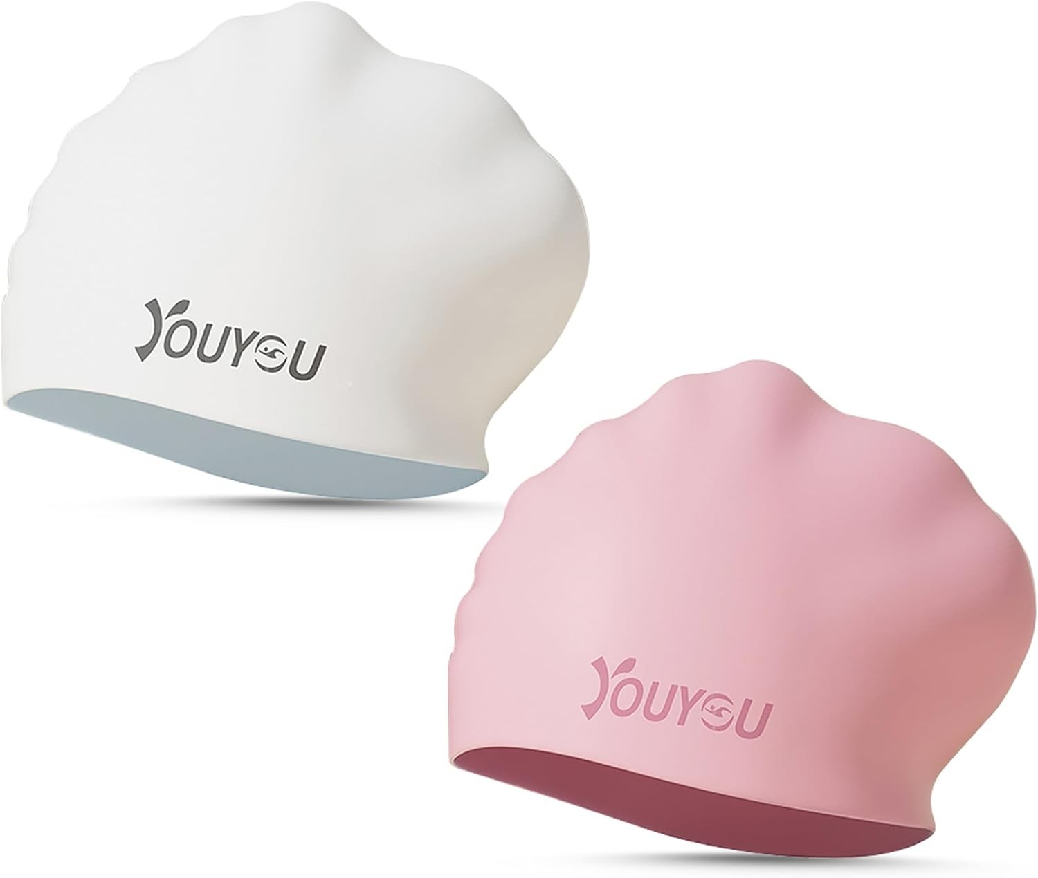 Dizokizo 2pcs High Elasticity Silicone Swim Cap for Women and Men, Comfortable Non-Slip Swimming Caps for Long and Short Hair, Durable Waterproof Swim Hats for Adults, Keep Hair Dry (White & Rose red)