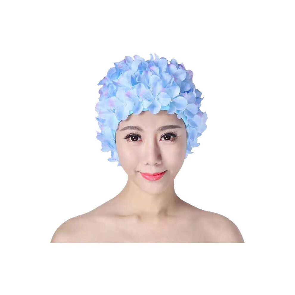 Swim Hat Cap, 3D Flower Swimming Hat, Vintage Floral Petal Retro Swim Caps, Bathing Caps for Women, Ladies Flower Long Hair Care Bath Cap Hat, Women Casual Sports Swimming Hat One Size Adults