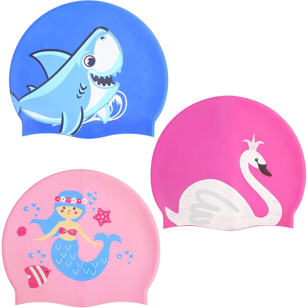 3 Pack Silicone Kids Swimming Cap for Boys Girls, Swimming Caps for 3-10 Toddler Children Teen, Waterproof Swimming Caps for Short/Long Hair