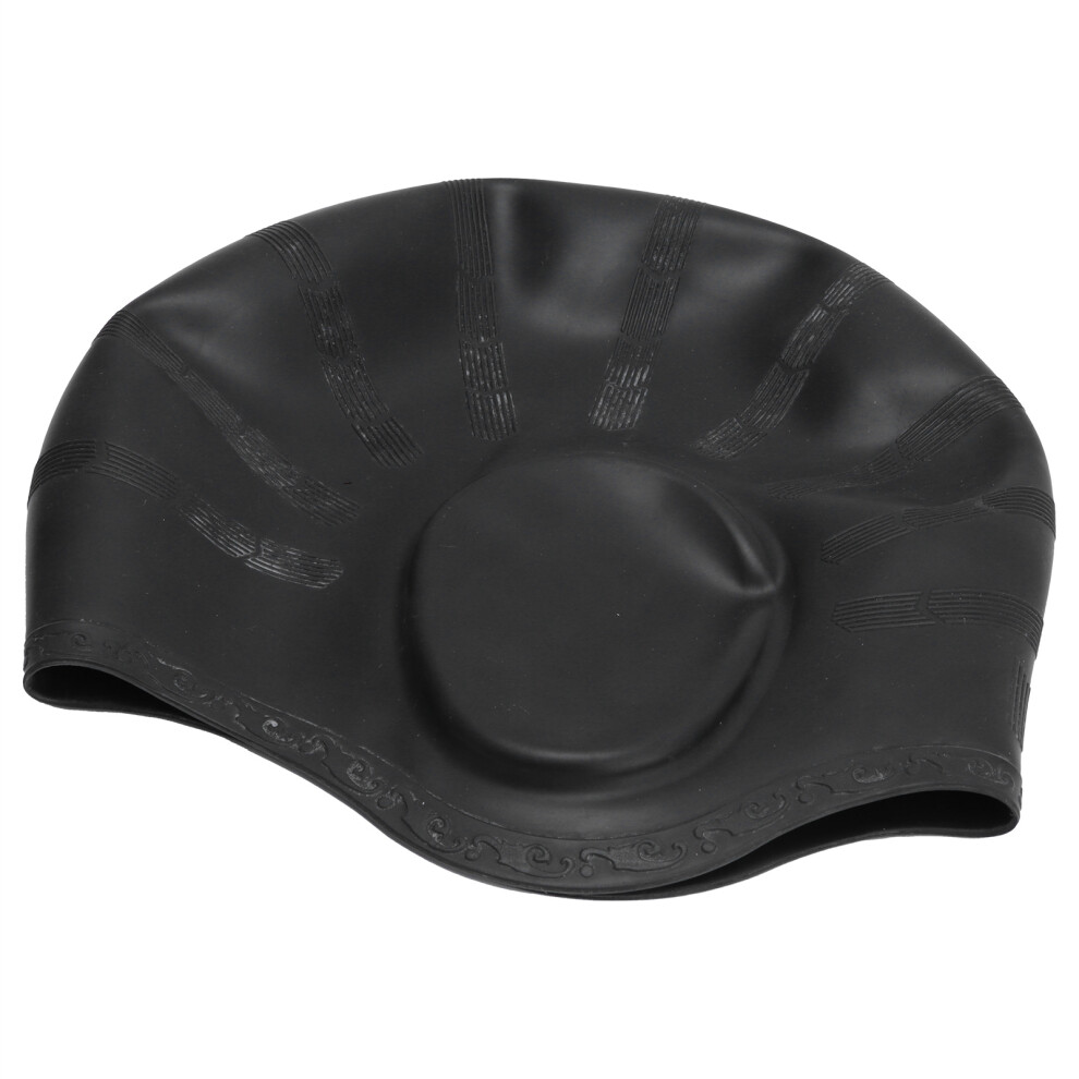WHALE Extra Large Swim Cap for Women Men, Durable Silicone Swimming Hat with Ear Protection, Unisex Adults Bath Swimming Caps for Long Thick Curly Hair & Dreadlocks Braids Weaves Afro Hair (Black)