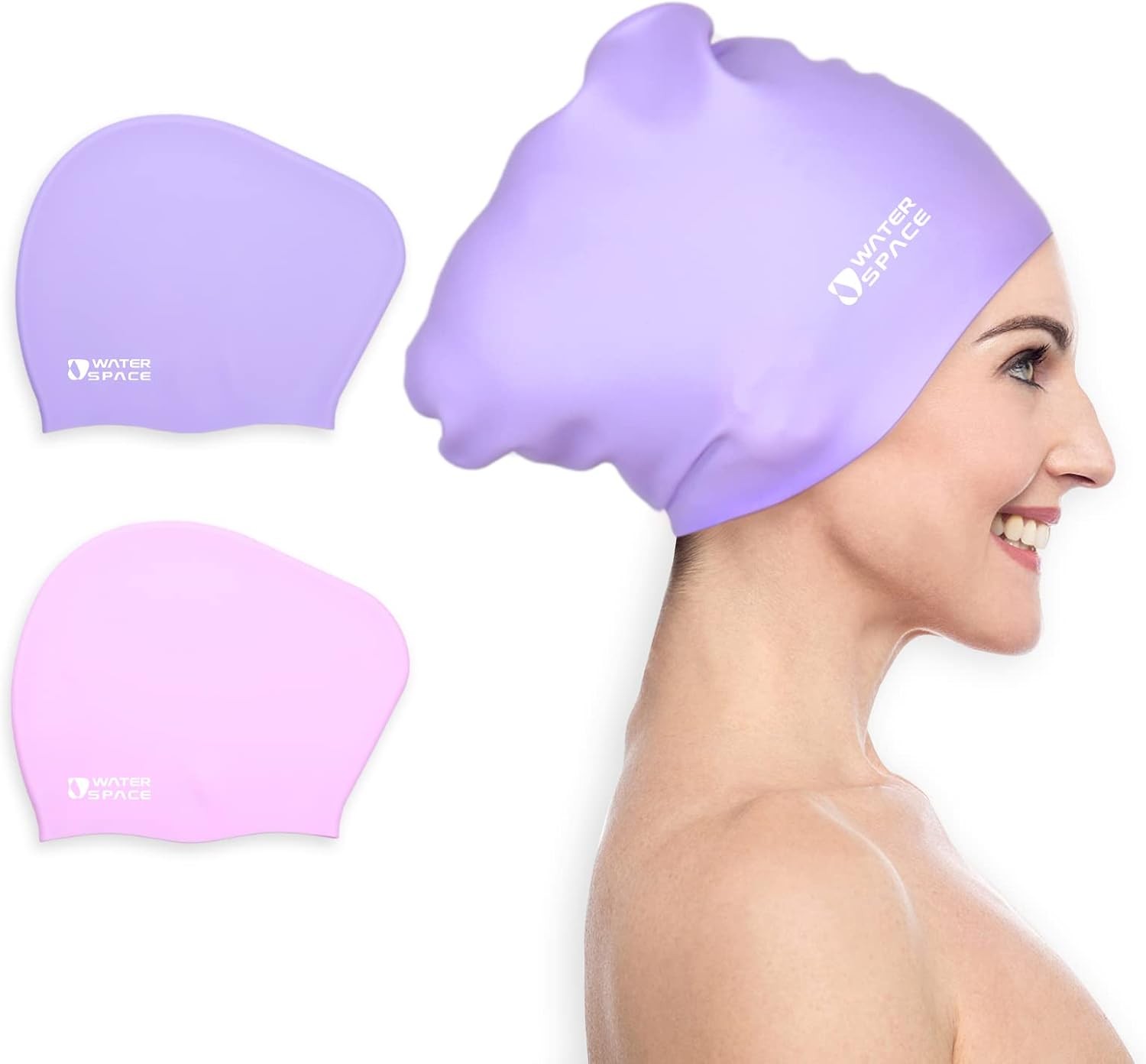 Water Space Swimming Cap for Women Ladies Man, Adult Swimming Caps for Long Hair, 2 Packs Waterproof Silicone Swimming Cap