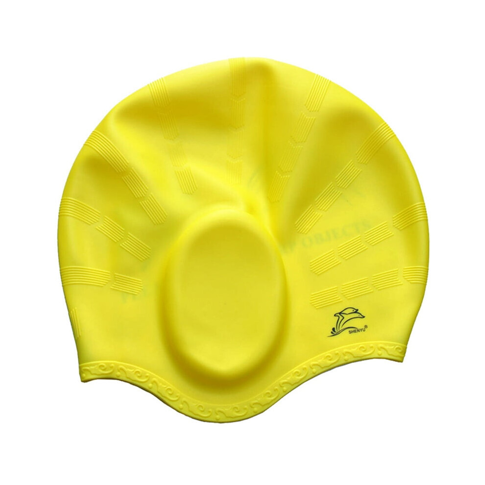 JINGYAN Swimming Caps Women 3D Petal Swimming Caps For Long Hair Outdoor 5 Colors Personalized Flowers Design Cap Delicate(Yellow)