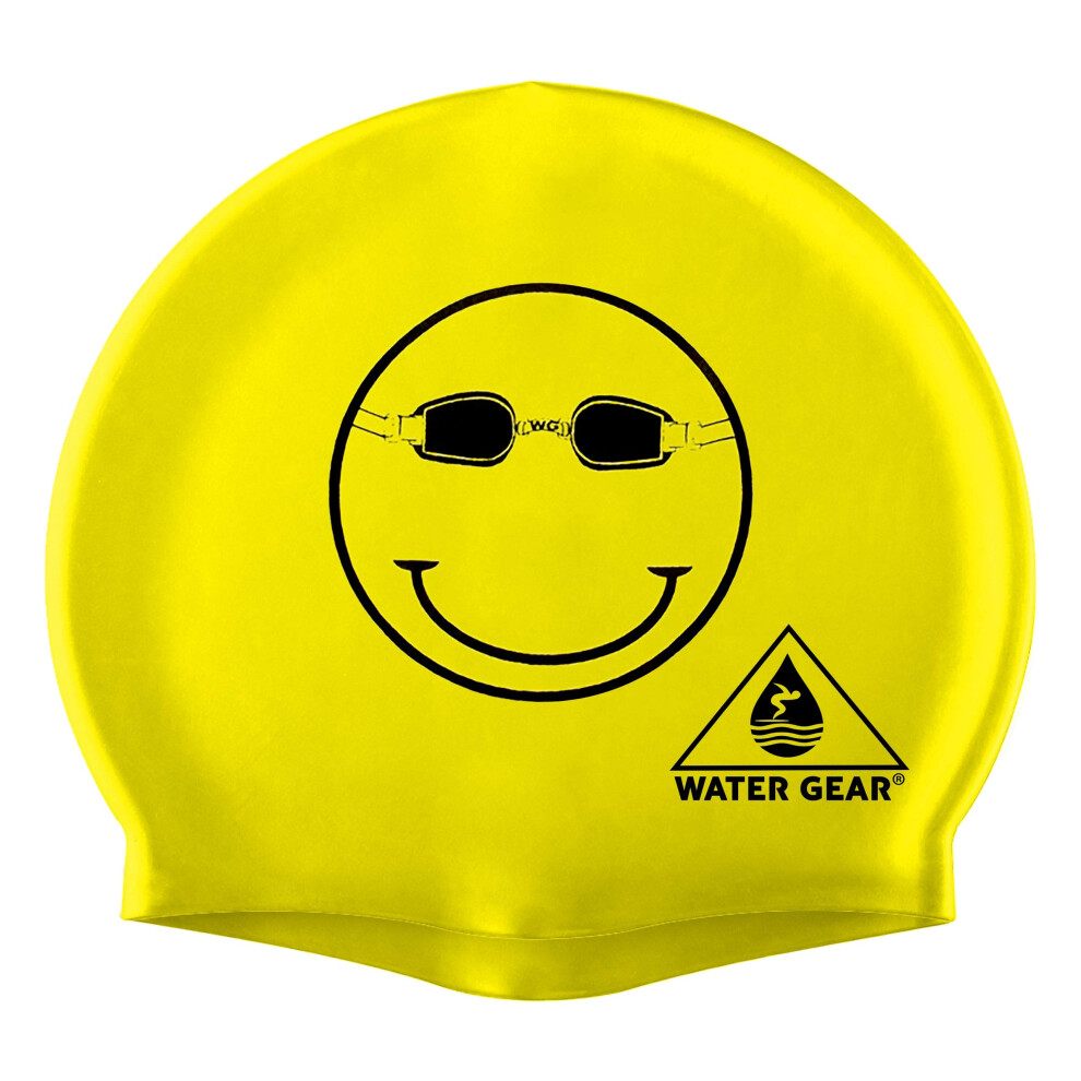 Water Gear Latex Swim Cap - Swimming Caps for Girls Long Hair - Waterproof Swimming Cap - Happy Face Black/Yellow