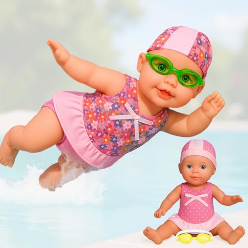 Hitburu Swimming Doll - Waterproof Swim Baby Doll With Movable Joint - Toddler Travel Toys for Children Friends Girls Boys Family Time Summer Sunny Sand Bathtub