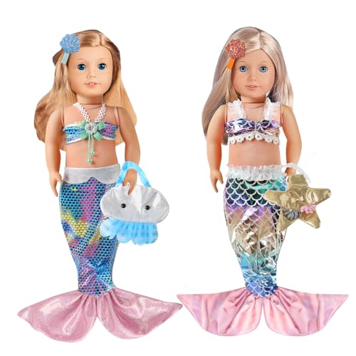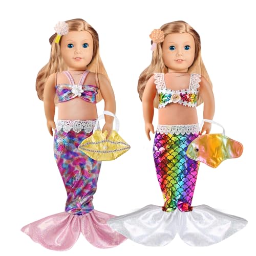 2 PCS Mermaid Tail Doll Clothes and Accessories, Swimming Doll Clothes Set for 14-16 Inch Girl Dolls, Summer Clothes Outfits with Mermaid Swimsuits for Kids Girls Boys Gifts (Not Doll)
