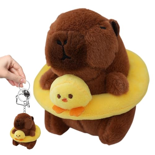 Capybara Key Chain - 4-Inch Swimming Capybara Doll Bag, Plush Keychain Stuffed Animal Doll Realistic Key Ring Charm | Plush Booster Toy Pendant for Backpack Birthday