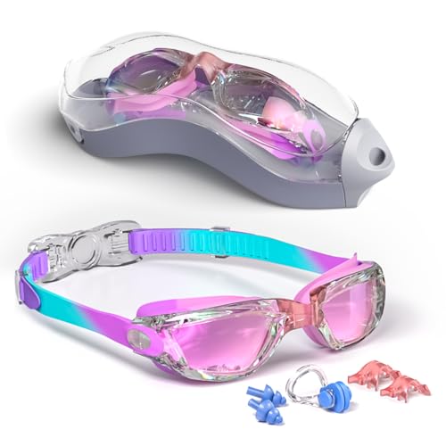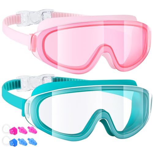 Hurdilen Kids Swim Goggles, Swimming Goggles for Kids Children, Anti-Fog Anti-UV Youth Swim Glasses with Nose Clip, Earplugs for Age 3-15