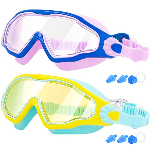 Freela 2 Pack Swim Goggles Kids Swimming Goggles for Kids 6-14 8-12 3-6 4-7 8-14 with Nose Cover Anti Fog 180° Clear View Water Pool Goggles Mask Childrens Boys Girls Toddler Youth 4 5 6 7 8 9 Years