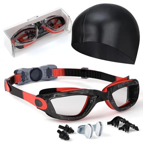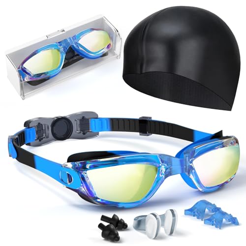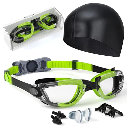 Hurdilen Kids Swim Goggles, Swimming Goggles for Kids Toddlers 3-14 with Swim Cap, Nose Clip, Nose Bridge, Ear Plugs