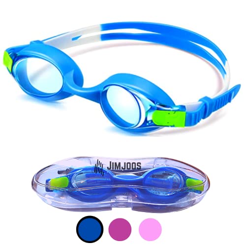 JIMJOOS Swimming Goggles For Kids - Anti Fog, Waterproof, UV Resist Swim Goggles - Quick Adjustable Strap and No Leaking Kids Goggles For All Ages With Protective Case (BLUE)