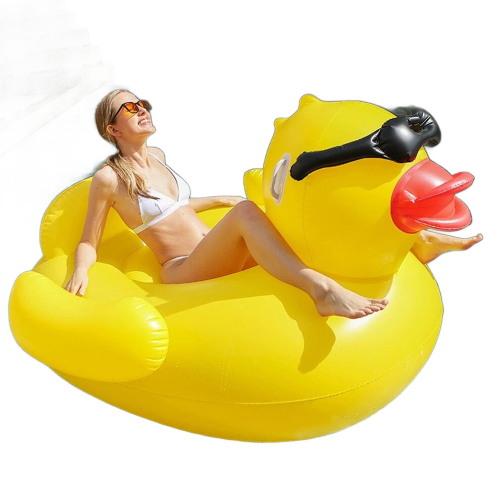 Inflatable Duck Pool Lounger - Huge Rubber Blow-Up Float Swim Ring Water Toy, Extra Large Floating Raft | Summer Outdoor For Swimming Beach Lake Carnival Birthday Party Decoration Adults Kids