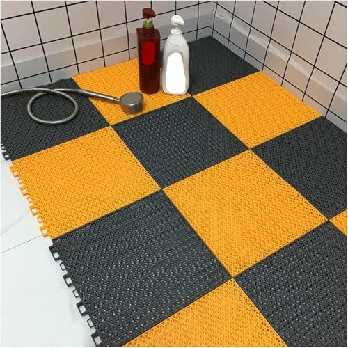 JVNALwnkv Bathroom Rug Mat,Floor Mat PVC Shower Interlocking Floor Mats 14mm PP Non-Slip Floor Mat, Bathroom Square Floor Tiles for Corridors Balconies Swimming Pools(Grey+yellow,30x30x1.4cm15pcs)