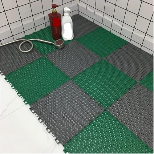 Bathroom Rug Mat,Floor Mat PVC Shower Interlocking Floor Mats 14mm PP Non-Slip Floor Mat, Bathroom Square Floor Tiles for Corridors Balconies Swimming Pools(Grey+green,11.8" x 11.8" (Square))