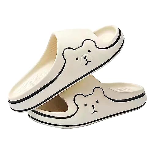 Women's Cute Bear Sliders, Ladies Quick-Drying Shower Shoes, Anti-Slip Lightweight Open-Toe Slippers, Swimming Pool Beach Sliders, Cloud Bathroom Soft-Sole Slippers, Extra Comfortable