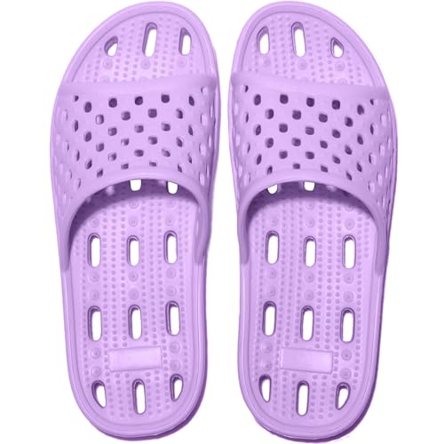 AIGOUT Shower Slippers for Women Men Quick-Drying Shower Shoes Anti-Slip Bathroom Slippers Swimming Pool Beach Sliders Summer Sandals (Purple, 7.5UK)